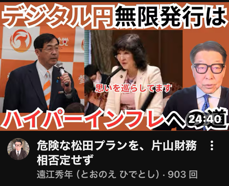 保護中: 危険な松田プランを、片山財務相否定せず  デジタル円無限発行は🌟ハイパーインフレへ